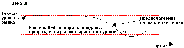 2.2. Второй тип отложенных ордеров - это ордера лучше рынка или Limit-ордера (Лимит-ордера). 2.2.1. Limit-ордер на продажу - это ордер на продажу выше текущего уровня рынка, когда рынок вырастет до уровня "X" (продать дороже, чем сейчас).