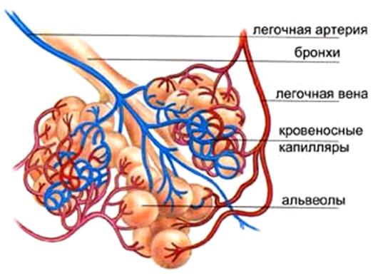 Задание 4. Рассмотрите альвеолы легких млекопитающих (рис. 36). Обратите внимание на интенсивность опутывания альвеол кровеносными сосудами.