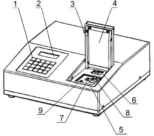 2.2. Устройство прибора В кюветном отделении расположены гнезда для установки светофильтров возбуждения и регистрации и стандартной кварцевой кюветы К10 (рис. 2).