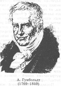 На протяжении XIX в. все естественные науки пережили бурный подъем. Достижения географии и биологии (экологии) были связаны прежде всего с именами Александра Гумбольдта и Чарльза Дарвина. Александр Гумбольдт был человеком энциклопедических знаний. Человеком-академией назвал его Гете. В жизни и научной деятельности Гумбольдта можно выделить три главных периода: путешествие в Южную и Центральную Америку, обработка экспедиционных материалов, работа над обобщающим теоретическим трудом "Космос". Путешествие в Южную и Центральную Америку (1799-1804) позволило Гумбольдту необычайно расширить свой географический кругозор, сделать наблюдения и собрать коллекции, послужившие фактической базой для теоретических обобщений. Получить разрешение на научную экспедицию в заморские владения Испании в то время было делом необычайно трудным. Управление колониями осуществлялось методом жестокой военной диктатуры. Торговля была всецело в руках государства. Продажа товаров какому-либо иностранцу каралась смертной казнью. Въезд иностранцев в колонии был запрещен. Богатая и своеобразная природа Южной Америки оставалась поэтому мало изученной. Гумбольдт, добившись аудиенции у испанского короля, сумел так очаровать его, что ему была предоставлена совершенно небывалая для иностранца свобода передвижения и исследования испанских владений в Америке. Отправляясь в свою первую большую экспедицию, Гумбольдт задумал необычайно широкую программу работ: "Я буду собирать растения и окаменелости, производить прекрасными инструментами астрономические наблюдения, я буду химически анализировать состав воздуха... Но все это не главная цель моего путешествия. На взаимодействие сил, на влияние мертвой природы на животный и растительный мир, на эту гармонию должны быть неизменно направлены мои глаза", писал Гумбольдт накануне отплытия. На обработку материалов экспедиции по Южной и Центральной Америке Гумбольдту потребовалось более 20 лет. Все эти годы (1804-1827 гг.) он жил в Париже -признанном центре европейской культуры в то время. Научные труды Гумбольдта, дар популяризатора, личное обаяние сделали его знаменитостью. Восхищение вызывали исключительные результаты, достигнутые в такой трудной экспедиции одним человеком. Отдавали должное личному героизму путешественника, не останавливавшегося ни перед какими опасностями для достижения своих целей.