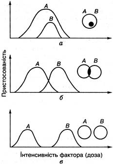 4.2. Можливі взаємодії екологічних ніш видів А і 5 (за Піанкою)