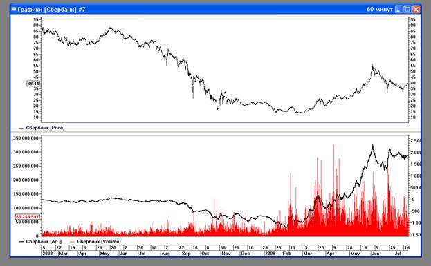 Объем торгов – это пар, движущий рыночный паровоз (Д.Гранвилл) Объем или оборот торгов является очень важным индикатором состояния рынка. Понимание объема заключаемых сделок даст вам понимание процессов, происходящих на рынке. Прежде всего, объем отражает активность покупателей и продавцов. Низкий уровень объема (меньше 50% от среднего уровня) свидетельствует о неопределенности ожиданий участников рынка, что особенно характерно для периодов бокового движения рынка. При устойчивой восходящей тенденции объем должен увеличиваться в периоды роста цен и уменьшаться в периоды коррекции. В точках, соответствующих окончанию коррекций, часто наблюдается минимальный объем. Снижение торгового оборота в направлении основной тенденции говорит о потере интереса толпы. Через некоторое время акция может резко упасть в цене.