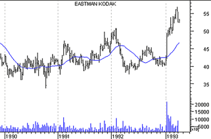 Рис.24 Долгосрочные тенденции обычно отслеживаются с помощью 200 дневного скользящего среднего. Для автоматического определения оптимальной длительности периода расчета можно прибегнуть к компьютерным программам по техническому анализу. Если не учитывать комиссионные, большая прибыль обычно достигается при использовании более коротких скользящих средних.