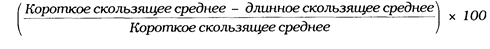 Разность между двумя скользящими средними будет выражена в пунктах, если ценовой осциллятор определять путем вычитания длинного скользящего среднего из короткого: Короткое скользящее среднее — длинное скользящее среднее. Разность между двумя скользящими средними будет выражена в про центах, если ценовой осциллятор определять путем деления разности между скользящими средними на короткое скользящее среднее: