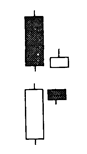 Эти свечки выражают нерешительность рынка в выборе направления движения, но в меньшей степени, чем предыдущие, так как от цены открытия первоначальное движение было ярко выраженным, но затем цены вернулись обратно. Мы рассмотрим только те стандартные комбинации из двух и трех свечек, которые возможны на FOREX.