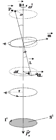 болады. Мұны Лармор жиілігі деп атайды. Сонымен атомның электрондық орбиталары сыртқы магнит өрісінің әсерінен прецессиялық қозғалыс жасайды. Бұл қозғалыс дөңгелек тоққа эквивалентті (3.3.18.1)-суреттегі штрихталған шеңбер).