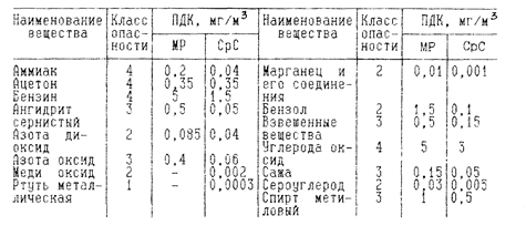 Таблица 5.1. ПДК некоторых 3В в атмосферном воздухе населенных мест