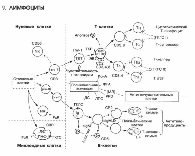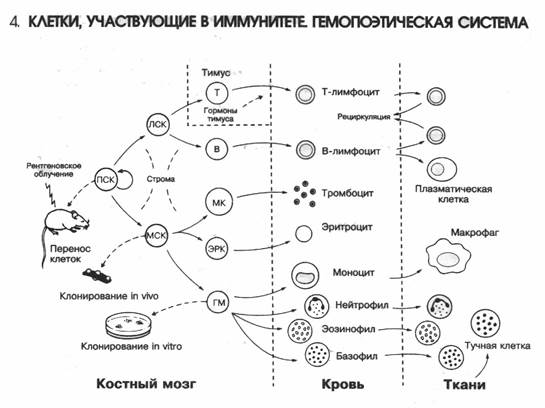 Нейтрофилы. Нейтрофилы - это полиморфноядерные лейкоциты, наиболее объемная популяции лейкоцитов, содержание их в крови составляет в среднем 3-6*10 клеток в 1 л. крови. Местом образования нейтрофилов является костный мозг. Нейтрофилы образуются из стволовой мультипотентной кроветворной клетки, из которой образуется пул миелоидных предшественников, затем стадии миелобласта, промиелоцита и миелоцита. Конечные этапы дифференцировки - это метамиелоцит, палочкоядерная и сегментоядерная формы нейтрофила. Длительность цикла Дифференцировки до зрелой клетки от 7 до 10 дней. Срок пребывания нейтрофилов в кровотоке в среднем 6,5 часов. Далее нейтрофилы, проникая через эндотелий сосудов при помощи амебовидного движения, попадают в ткань, где и заканчивают свое существование в течение 3-5 дней, осуществляя свои эффекторные функции: 1. Основная функция - уничтожение чужеродных клеток или агрегатов путем фагоцитоза. 2. Осуществляет киллинг чужеродных клеток. Эти эффекторные функции нейтрофил осуществляет после выхода из сосудистого русла; исключения из этого правила составляют лишь острый сепсис и воспаление сосудистой стенки. 3. Важнейшей функциональной характеристики нейтрофилов является формирование вместе с другими иммунокомпетентными клетками очага воспаления. Нейтрофилы как наиболее подвижные клетки первыми приходят к месту вторжения чужеродного и стимулируют приход в данный очаг других элементов. Выбрасывая свои гранулы, содержащие эластазы, коллагеназу, катионовые белки, лизоцим, щелочную фосфатазу, белок в ближайшее окружение, нейтрофилы влияют фактически на все основные механизмы воспалительной реакции. 4. Нейтрофилы, выделяя разнообразные химические вещества, участвуют в регуляции образования и функционирования иммунокомпетентных клеток других типов. 5. Кроме того, нейтрофилы выделяют митоген, активирующий бласттрансформацию В-лимфоцитов, а также хемотаксическое вещество, специфически действующее на моноциты и эозинофилы. Нейтрофилы оказывают влияние на выброс тромбоцитами серотонина.