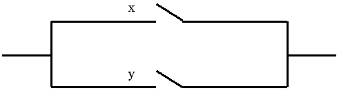 Рис. 4. 1 Функция проводимости схемы, состоящей из двух параллельно соединенных контактов x и y (рис. 4. 2) есть f (x, y) = x V y.