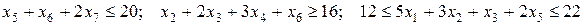 Позначимо через xj кількість рулонів лінолеуму, що розкроюються j- м способом (j = 1, 2, …, 7). План розкрою визначається вектором Умови забезпечення необхідного асортименту задаються нерівностями: