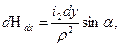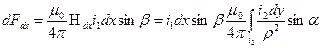 где α — угол между вектором ρ и направлением тока по элементу с dy. Весь проводник 2 создаст в месте расположения элемента с dx напряженность магнитного поля