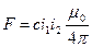 Согласно сказанному, электродинамическая сила в контуре, обтекаемом током i,
