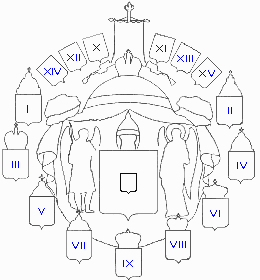 Над сенью главного щита помещались шесть щитов.