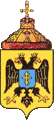 «в золотом щите чёрный византийский, увенчанный двумя золотыми коронами, орёл с червлёными языками и золотыми клювами и когтями; на груди в лазуревом, с золотыми краями, щите — золотой осьмиконечный крест…» Прим.: Герб увенчан подобной шапке Мономаха короной Петра I (шапка второго наряда).