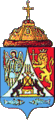 Главный щит снизу окружают девять щитов, увенчанных принадлежащими им коронами; гербы царств: