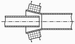 Для предотвращения деформации тонкостенных элементов в процессе сварки внутрь трубы вставляют металлическую оправку, удаляемую после сварки. Процесс сварки можно регулировать изменением скорости соударения V, скорости движения фронта контакта Vα и угла соударения поверхностей γ.
