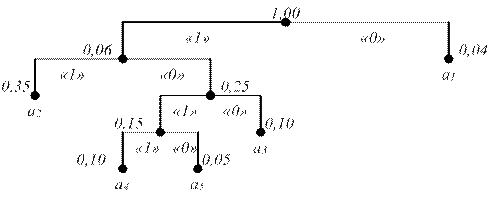 Рисунок 1.2 – Кодовое дерево для кода Хаффмана.