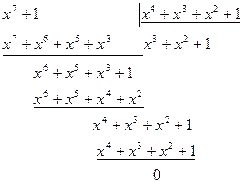 Операции сложения, вычитания, умножения и деления полиномов выполняются по обычным арифметическим правилам, только вычитание заменяется сложением, которое производится как сложение по модулю два. Циклические коды задаются с помощью порождающего (образующего) Любой полином