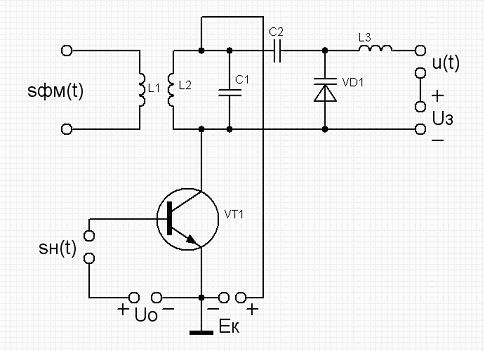 Рисунок 16.5 – Принципиальная схема фазового модулятора с варикапом. Несущее колебание При изменении емкости варикапа происходит изменение реактивного сопротивления контура и, следовательно, сдвига фаз