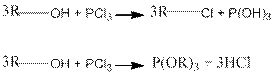 б) При реакции спиртов с галогенидами фосфора могут получаться в зависимости от условий, как галогенопроизводные, так и эфиры фосфористой кислоты: