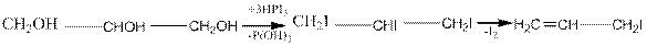 При действии галогенидов фосфора замещаются галогеном все три гидроксила: СН2ОН—СНОН—СН2ОН+РВr3→ СН2Вr—СНВr—СН2Вr+Р(ОН)3 1,2,3-трибромпропан При взаимодействии с иодом и фосфором образующийся 1,2,3-трииод- пропан распадается на иод и иодистый аллил: