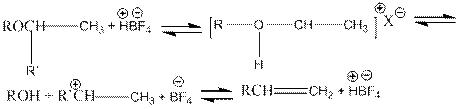При действии суперкислот на эфиры при низких температуах генерируются карбкатионы, которые могут претерпевать различные перегруппировки и распад до алкенов.