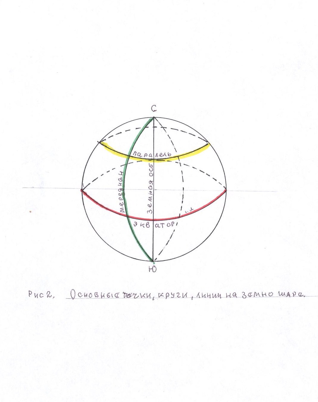 Эллипсоид вращения Красовского. Ошибки от этого упрощения составляют: в определении расстояний - ± 0,5%, а в определении углов ±12´. На земном шаре имеются точки, круги и линии, которые необходимо знать, т.к они составляют основу для картографических проекций, а также теории воздушной навигации. К основным географическим точкам земного шара относятся полюса: северный, южный, магнитный и географический. Основными линиями на земном шаре являются: параллель и меридиан. Основными кругами на земной поверхности являются: экватор, малый круг, большой круг. Разберем их более подробно.
