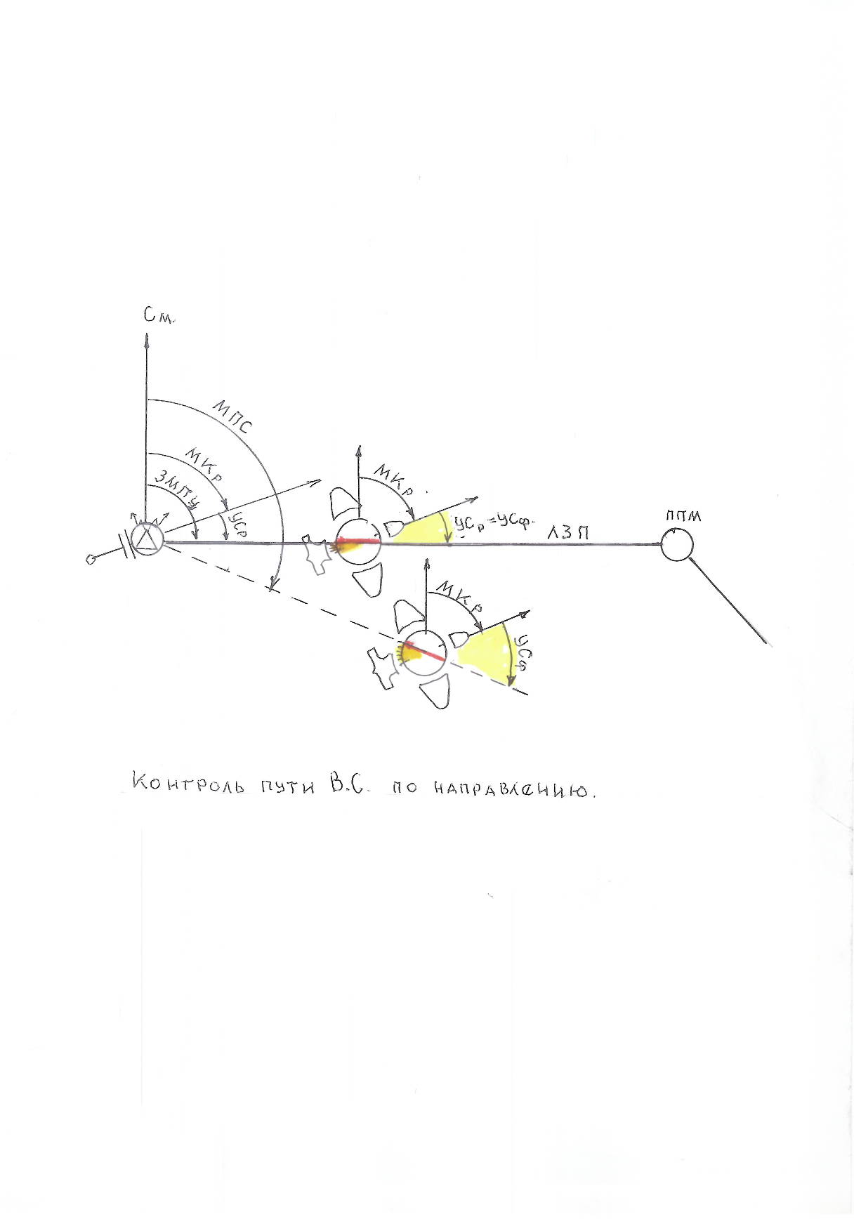 Контроль пути воздушного судна по направлении. МПС >ЗМПУ – воздушного судно уклонилось вправо МПС <ЗМПУ – воздушного судно уклонилось влево МПС =ЗМПУ – воздушного судно летит по ЛЗП. Контроль пути по направлению осуществлять и по поведению стрелки СУШ.