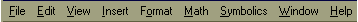 File (Файл) – работа с файлами, сетью интернет и электронной почтой; Ниспадающее меню содержит команды, стандартные для Windows-приложений. Edit (Правка) – редактирование документов; Ниспадающее меню также содержит команды, стандартные для Windows-приложений.Большинство из них доступны только в случае, если в документе выделены одна или несколько областей (текст, формула, график и т.д.) View (Обзор) – изменение средств обзора; Toolbars (Панели) - позволяет отображать или скрывать панели инструментов Standart (Стандартная), Formatting (Форматирования), Math (Математика). Insert (Вставка) – Команды этого меню позволяют помещать в MathCAD -документ графики, функции, гиперссылки, компоненты и встраивать объекты. Format (Формат) – изменение формата объектов Equation (Уравнение) - Форматирование формул и создание собственных стилей для представления данных Math (Математика) – управление процессом вычислений; в MathCAD существует два режима вычислений: автоматический и ручной. В автоматическом режиме результаты вычислений полностью обновляются при каком-либо изменении в формуле. Automatic Calculation (Автоматическое вычисление) - позволяет переключать режимы вычислений. Symbolik (Символика) – выбор операций символьного процессора; Позиции этого меню подробно рассматриваются в Лекции 6, посвященной символьным вычислениям в системе MathCAD. Window (Окно) – управление окнами системы; Help (?) – работа со справочной базой данных о системе; Mathcad Help (Справка по MathCAD) - содержит три вкладки: Содержание - справка упорядочена по темам; Указатель - предметный указатель; Поиск - находит нужное понятие при вводе его в форму. Каждая позиция главного меню может быть сделана активной. Для этого достаточно указать на нее курсором – стрелкой мыши и нажать ее левую клавишу. Можно также нажать клавишу F10 и использовать клавиши перемещения вправо и влево. Затем выбор фиксируется нажатием клавиши ввода Enter. Если какая-либо позиция главного меню делается активной, она выводит ниспадающее подменю со списком доступных и недоступных (но возможных в дальнейшем) операций. Перемещение по списку подменю и выбор нужной операции производится аналогично тому, как это описано для главного меню.