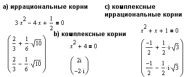 Отметим, что при иррациональных и комплексных решениях команда Factor (Фактор) меню Symbolics (Символы) не работает.Но MathCAD находит и такие решения при использовании команды Solve