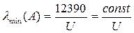 Рис. 18.6 Однако есть принципиальное отличие от классической теории: нулевые значения мощности начинаются не в начале координат, а обрываются при конечных значениях λmin – это и есть коротковолновая граница спектра рентгеновского излучения. Экспериментально установлено, что Существование коротковолновой границы непосредственно вытекает из квантовой природы излучения. Действительно, если излучение возникает за счёт энергии, теряемой электроном при торможении, то энергия кванта h ν не может превысить энергию электрона eU, т.е. h ν ≤ eU, отсюда Как видно из (18.17) по экспериментальным результатам можно определить постоянную Планка h. Следует отметить, что из всех методов определения постоянной Планка метод, основанный на измерении коротковолновой границы спектра тормозного рентгеновского излучения, является самым точным. Когда энергия бомбардирующих анод электронов становится достаточной для вырывания электронов из внутренних оболочек атома, на фоне тормозного излучения появляются резкие линии характеристического рентгеновскогоизлучения. Частоты этих линий зависят от природы вещества анода, поэтому их и назвали характеристическими. Состояние атома с вакансией во внутренней электронной оболочке неустойчиво. Электрон одной из внешних оболочек может заполнить эту вакансию, и атом при этом испускает избыток энергии в виде фотона характеристического излучения: