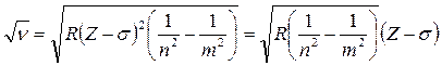 где n = 1, 2, 3,…; m = n +1, n +2, n +3,… Здесь R = 3,29 ∙1015 c−1 − постоянная Ридберга; σ – постоянная, учитывающая экранирующую роль окружающих ядро электронов. Чем дальше электрон от ядра, тем значение σ больше. Из выражения (18.18) вытекает, что корень квадратный из частоты ν связан с атомным номером Z линейной зависимостью: