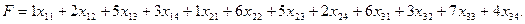 Очевидно, що обсяг перевезеного вантажу не може бути негативним, тому варто ввести обмеження не заперечності змінних: xij ≥0. Сумарні витрати F на перевезення виражаються через коефіцієнти витрат у такий спосіб: