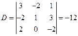 а) определена, б) не определена, в) несовместна. Решение. Вычислим определитель системы: