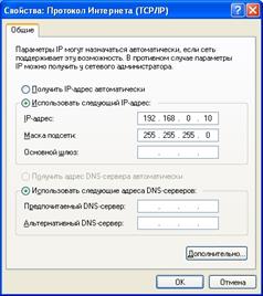 В появившемся окне выберите «Протокол Интернета (TCP/IP)», нажмите «Свойства». Откроется окно настроек протокола. Активируйте флажок «Использовать следующий IP-адрес». Введите в поля IP-адрес и Маска подсети адреса установок (рис.4.).