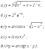 191. у = 4х/(4+х2) 192. y = (x2-1)/(x2 +1) 193. y = (x2+1)/(x2-1) 194. y = x2/(x-1) 195. y = x3/(x2+1) 196. y = (4x3+5)/x 197. y = (x2-5)/(x-3) 198. y = x4/(x3-1) 199. y = 4x3/(x3-1) 200. y = (2-4x2)/(1-4x2) 201. y = (1nx)/ 203. y = 205. y = 1n (x2-4) 206. y = e1/(2-x) 207. y = 1n (x2+1) 208. y = (2+x2) 209. y = 1n (9-x2) 210. y = (x-1)e3x+1.