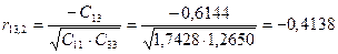 Отже, кожна з пояснювальних змінних не мультиколінеарна з двома іншими. Щоб визначити наявність попарної мультиколінеарності, продовжимо дослідження. Крок 6. Обчислимо частинні коефіцієнти кореляції, скориставшись елементами матриці С.