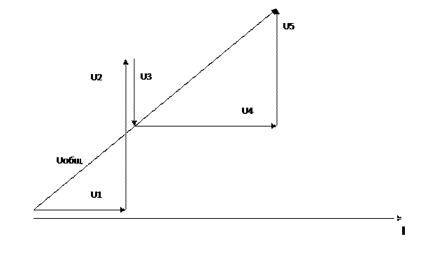 Задача № 2 По заданной векторной диаграмме для цепи перемененного тока с различными видами сопротивлений построить схему цепи и определить следующие параметры: 1. Сопротивление каждого элемента и общее сопротивление цепи. 2. Напряжение, приложенное к цепи. 3. Угол сдвига фазы. 4. Активную, реактивную и полную мощность цепи. С помощью логических рассуждений пояснить как измениться величина тока и угол сдвига фазы в цепи при изменении частоты тока в два раза