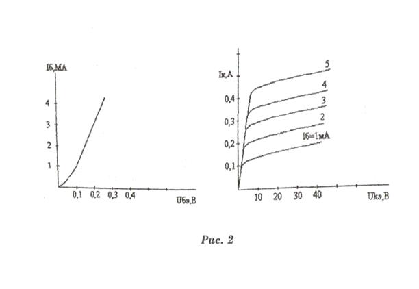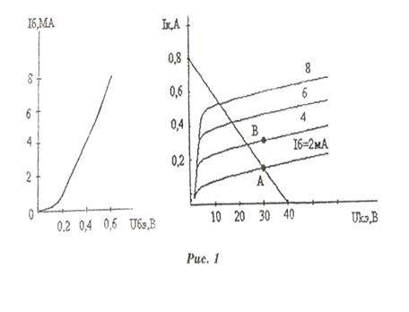 Задача № 3 Транзистор включен по схеме с общим эмиттером. Заданы напряжение на базе, напряжение на коллекторе и напряжение источника питания. Используя входные и выходные вольтамперные характеристики транзистора рассчитать следующие параметры: 1. Ток в коллекторе. 2. Коэффициент усиления 3. Сопротивление в нагрузке. 4. Мощность на коллекторе 5. Коэффициент передачи тока.