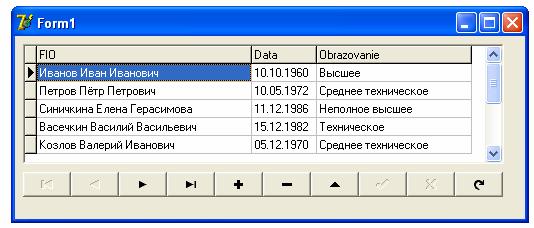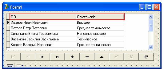 Обратите внимание на сетку BDGrid – поле Data исчезло. Из таблицы оно не удалилось, просто вы сделали его невидимым пользователю.