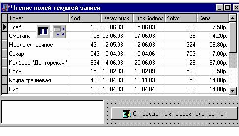 После этого запустите программу и щелкните по кнопке на форме. В ListBox вы увидите список содержимого полей текущей записи набора данных. Содержимое каждого поля интерпретируется как строковое значение и добавляется к списку ListBox.