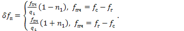 m1, n1, q1- любые целые числа с учетом знаков, связанные с ранее введенными номерами гармоник, образующих комбинационные частоты, следующими соотношениями Будем рассматривать приемник аналоговой РРС с ЧМ. Помеха на выходе частотного детектора (ЧД) образуется, если разность частот КП и ПЧ