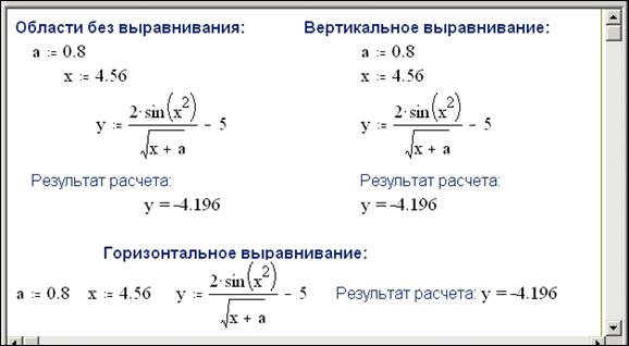 Области Mathcad-документа