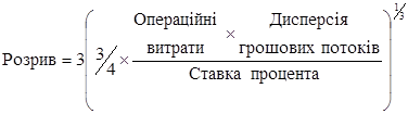 2. Формули визначення суми оптимального грошового залишку по моделі Міллера—Орра: розрив між верхніми і нижніми межами коштів: