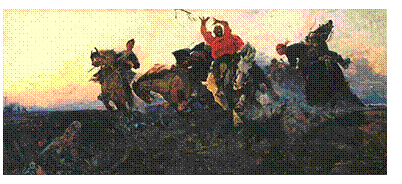 К.Т.-Б. Тельжанова«Кокпар» монументальна и величественна. В ней запечатлены яростная, захватывающая, беспощадная борьба, сменяют друг друга чувства восторга, отчаяния, смятения и восторга. Лица участников козлодрания, максимально приближены к зрителю, их эмоции усилены и эффектированы. Образная, выразительная сила этой работы, построенной на гиперболизации, экспрессии и выплеске страсти велика. Энергия, мощь, веющая с нее, усиливается, зрительно выливается в колористическое решение полотна. Пламенеет на солнце рубаха победителя, алый мак, цветущий среди трав закрепляет это властное звучание активного горячего красного цвета. Коричневые тона земли, переходящие от теплого, спокойного до звонкого, почти золотистого, в сочетании с интенсивной зеленью сочных степных трав, синими рефлексами неба на одеждах и синевы облаков на горизонте создают активную цветовую гамму. На материале этой картины и других произведений К.Т.-Б. Тельжанова можно видеть, как сквозь ткань и плоть живописи, привнесенного в казахскую культуру ХХ веком вида искусства, проявляется, мощная творческая потенция национальной души. Именно она прессует все выразительные средства художника в единый творческий метод, внося в искусство Казахстана эпико-романтический пафос, легендарную героику возвышенных человеческих образов, не разделявших собственную судьбу от национальной. В характере мазка и композиционном строе картин живописец преломляет отголоски безмерной страсти кочевника к вечному движению и беспредельности пространств, свободу его души и духа. Чисты и полнокровны краски «Кокпара», простые, ясные, но сильные чувства владеют его героями, схожими по своей героической стати с образами народного фольклора. Герой художника всегда, раздумывает ли он об отношениях традиции и времени, летит ли в стремительной скачке по родной степи, участвует ли он в схватках революции или даже мечтает о будущем у костра, всегда активная действенная личность. В этой работе наиболее выразительная сторона - экстатически властная тяга к активному действию, движению. Мысли и чувства, и тем более действия героев подчеркнуто экстравертны, очевидны в своем бурном эмоционально напряженном выплеске. Эффективная, спонтанная животворность сил человека и природы принципиальна как для этого полотна, так и для творчества художника в целом. Избыток жизненных сил и потенций природы в картине К.Т.-Б. Тельжанова приведен не просто в движение, а в бурлящий вихрь ритмов и событий. Гармоничное равновесие духа ранних работ сменяется в его искусстве свободным взлетом раскрепощенного, почти имматериализованного духа. На этой внутренней концепции выстроено пластическое решение полотна. Соответственно возникает обобщенный, свободный формальный строй, широта и динамика мазка, решительность ясных и чистых красочных сочетаний, необычность резких, порывистых композиционных решений. Апофеозом свободы, гимном свободе как жизненному идеалу, воплощенной в живописи стихией движения становится полотно «Кокпар». Всеволод Теляковский (1894 – 1963)