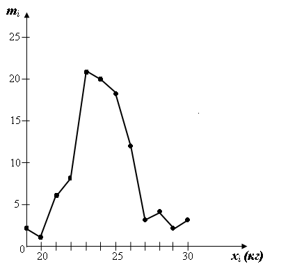 Построить гистограмму. Вычислить выборочное среднее арифметическое, медиану и моду.
