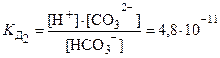 2 ступень: HСO3–⇄ H++ СO32–
