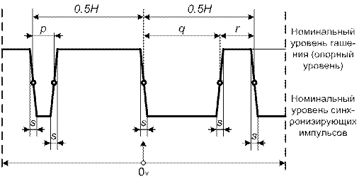 Таблица 1 – Значения амплитудных и временных параметров полного телевизионного сигнала и его составляющих.