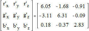 Основная цель данной работы состоит в изучении принципов получения заданного цвета на экране цветного телевизора. Принятый в настоящее время способ формирования заданного цвета базируется на трёхкомпонентной теории цветового зрения, а все математические соотношения, необходимые для технической реализации способа, могут быть получены из колориметрии. Классификация и стандартизация цветов производятся с помощью колориметрической системы X Y Z. Для того чтобы получить на экране телевизора некоторый цвет, заданный координатами x′, y′, z′ в системе X Y Z, необходимо знать свойства воспроизводящего приёмного устройства. Так как люминофоры трёхцветных кинескопов в настоящее время стандартизированы, целесообразно ввести колориметрическую систему первичных (основных) цветов приёмника R G B, которая на языке колориметрии описывает свойства воспроизводящего устройства. Однозначная связь между колориметрическими системами X Y Z и R G B позволяет по заданным координатам x′, y′, z′ некоторого цвета найти координаты r′, g′, b′ того же цвета в системе R G B. Для того, чтобы воспроизвести этот цвет на экране телевизора, необходимо сформировать сигналы цветоделенных изображений UR, UG, UB, пропорциональные координатам цвета r′, g′, b′, т.е.