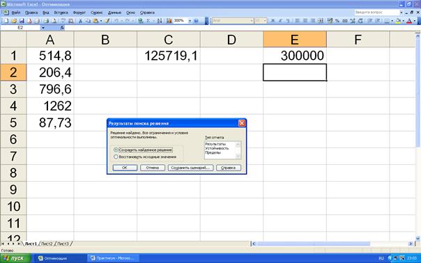 Рисунок 5.6. Результаты поиска оптимального решения.